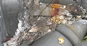 しっくいの腐食による雨漏り メンテナンスをしていない屋根 |